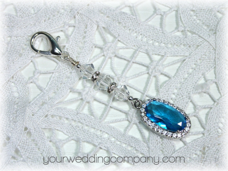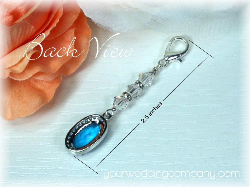 This charm measures a total of 2.5 inches long (including the clasp). You can easily attach it to your wedding bouquet, keepsake garter or inside your dress hem.