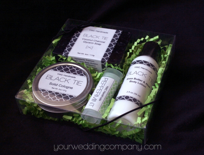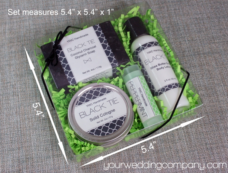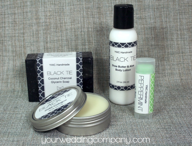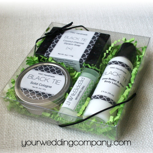 A sophisticated petite assortment of peppermint lip balm and other handmade bath and body products scented with notes of black peppercorn, leather, warm woods, patchouli, musk and citrus oils which we call "Black Tie". It is a favorite at our shows and the set is great for gifting and travel. This masculine set makes a perfect gift for fathers, groomsmen, husbands, boyfriends, roommates, teens, as well as a thoughtful gift for birthdays, anniversaries, Valentine's Day, Father's day, Christmas and more.