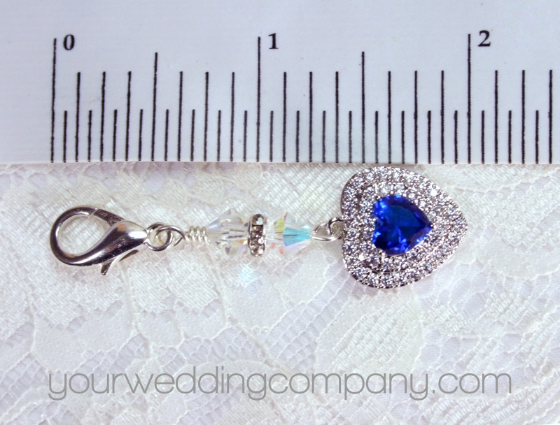 THIS CHARM IS PETITE and measures a total of 2-inches long (including the clasp). You can easily attach it to your wedding bouquet, keepsake garter or inside your dress hem.