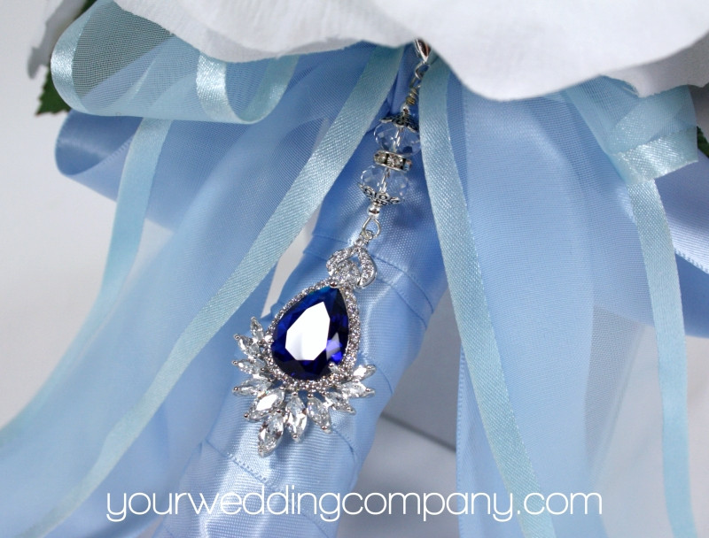 This stunning charm measures approximately 3-1/4-inches long. You can easily attach it to your wedding bouquet.