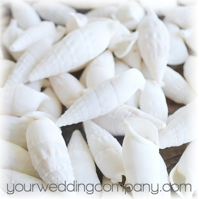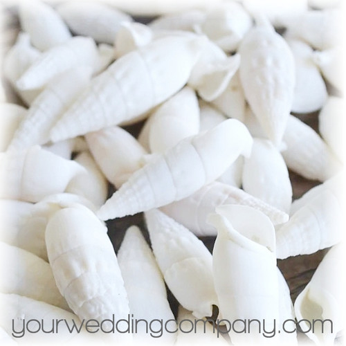 Cerithium shells make great beach-themed accents on tables, centerpieces, bouquets, and wedding favors. These white shells are 1.5 to 2 inches long and have a natural white color. Available in 1-pound bags (approximately 85 shells).