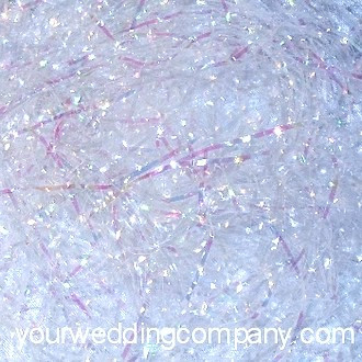 This pretty filler is great for putting in favor boxes, candy bags or gift baskets where candy or breakables are used. Made of shredded cellophane with an iridescent sheen. Available in 1/2-pound (8-ounce) bulk bags.