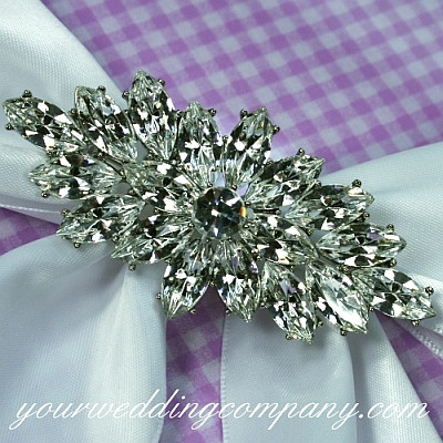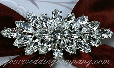 Brooches are an easy way to dress up your bouquet handle, purse, dress or hairstyle and can be worn after the wedding for other occasions. This stunning, large brooch is handmade with high-quality, clear Swarovski crystals in marquis and round shapes, each hand-set in silver rhodium. This brooch measures THREE inches across and 1-7/16 inches high.